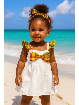 Voilà une adorable robe pour bébé créole facile et pratique mélange de coton et de Madras qui permet de se vêtir à l’antillais tout en offrant confort et allure féminine