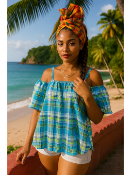 Corsage tout en madras avec des manches facile à mettre, parfait pour l'associé à une jupe de la collection DODY.