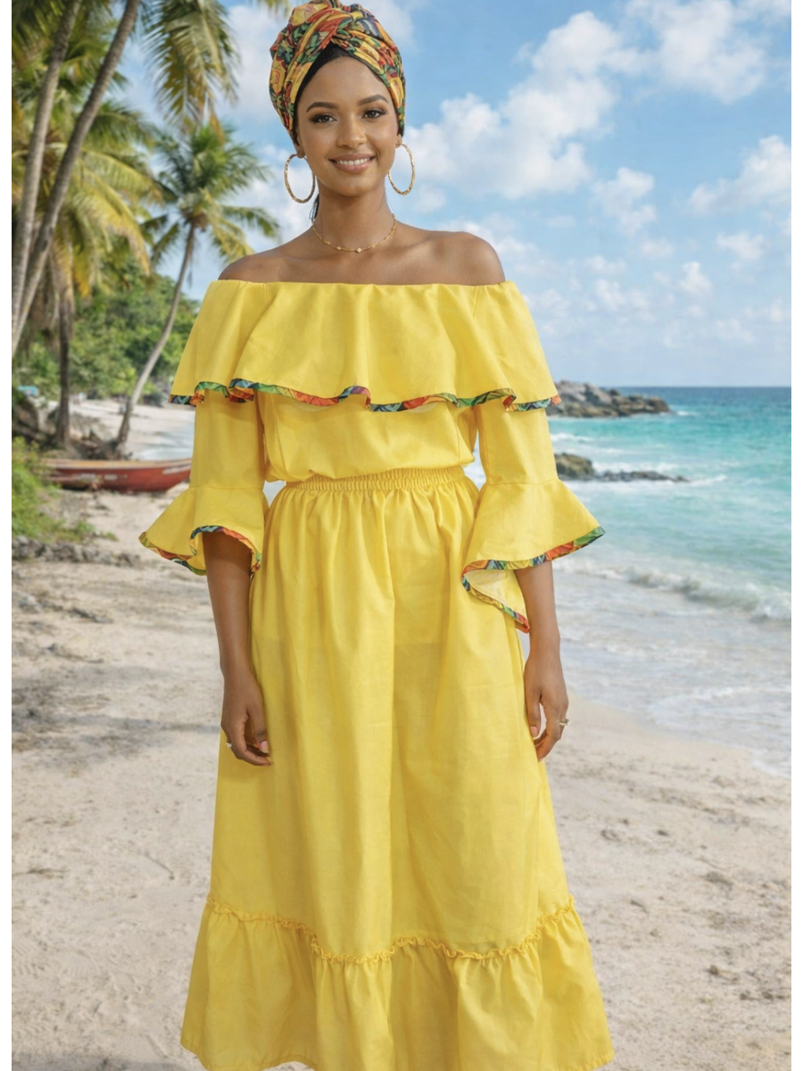 Le style chic antillais est parfaitement représenté par l'ensemble Poème entre madras et coton de la collection Dody pour femmes. Cet ensemble vous offre à la fois confort et élégance, porter l'ensemble Poème vous donnera un sentiment de légèreté flotante et une grande confiance, sans devoir se sentir inconfortable.