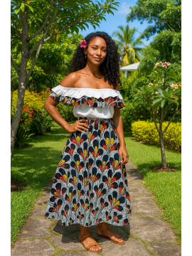 Jolie ensemble jupe entièrement en Wax accompagné d'un bustier.
