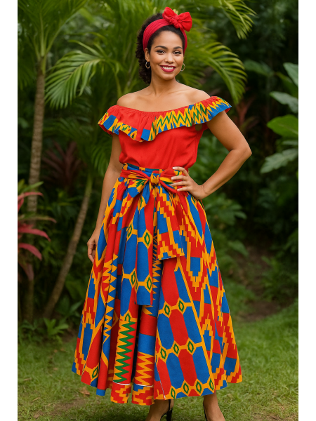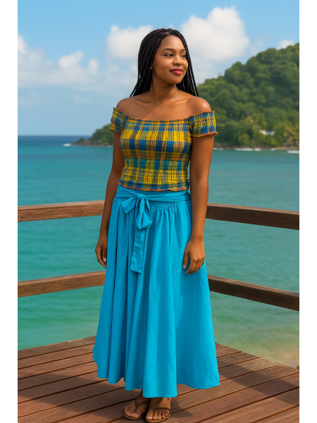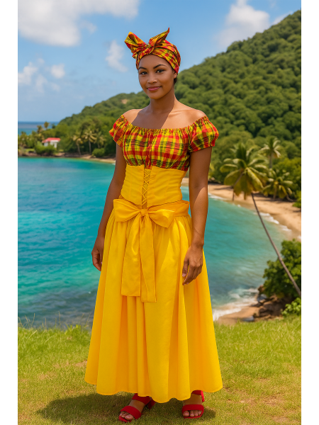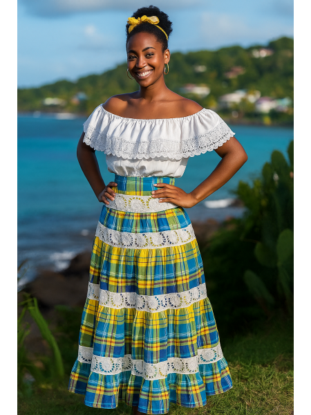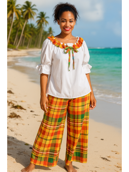 Le madras sert de base pour notre collection de tenues traditionnelles en Martinique ! Pour un diner chic ou pour recevoir à la maison, Dody.shop vous propose une collection d'ensembles madras enrichis de galon et dentelles ! Boléro ou corsage assortis avec jupe ou pantalon, l'ensemble madras tapera à l'oeil !