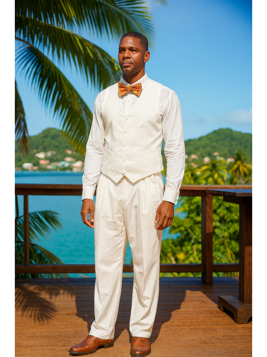 La magnifique tenue blanc "Cool" tout en coton avec son noeud papillon Madras traditionnel.