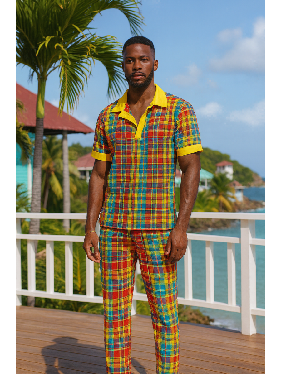 La magnifique tenue pantalon avec poches "Mathéo" mélange entre coton et Madras.