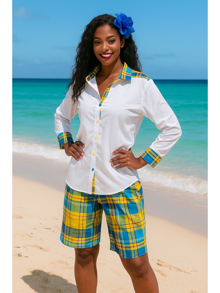 Le magnifique ensemble bermuda "méga" mélange entre coton et Madras.