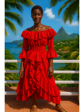 De part cette sublime robe entièrement entre coton et broderie anglaise au niveau du volant et ample à la taille de la magnifique collection Dody pour femmes vient compléter votre garde-robe.