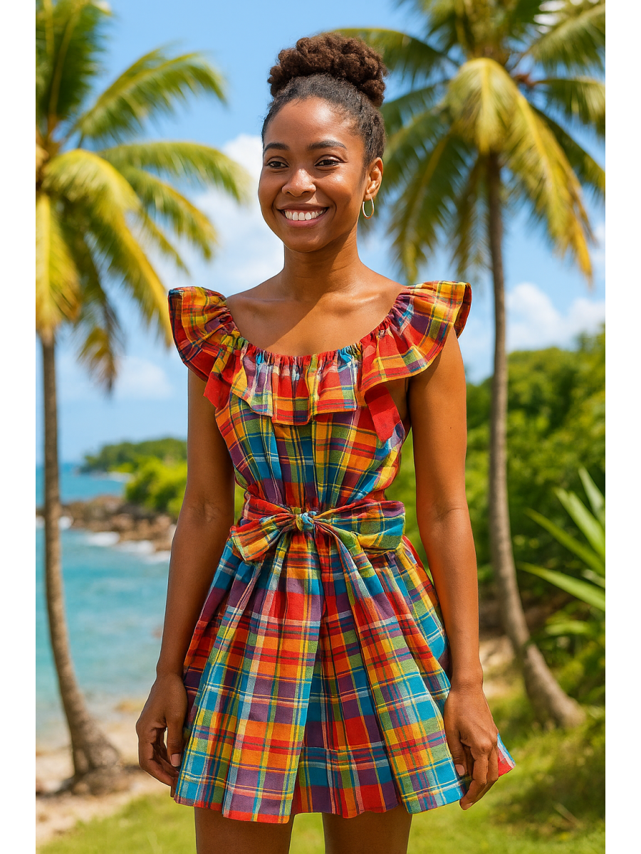 Rien que la pure beauté avec la magnifique robe Chloé de la collection Dody pour femmes ! Cette robe tout en madras du style antillais traditionnel capture l'innocence des enfants avec une apparence élégante et chic.