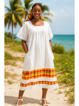 Une élégance sublime se rencontre avec la simplicité dans la robe Pauline 2 en mélangeant le 100 % coton et le madras de la collection Dody pour femmes. Elle est parfaite pour toutes les occasions, Pauline 2 ne vous offre que d'élégance et de classe pour attirer l'attention. Cette robe entre coton, madras et broderie anglaise est idéale pour marquer votre présence lors d'un évènement. Légère et simple.