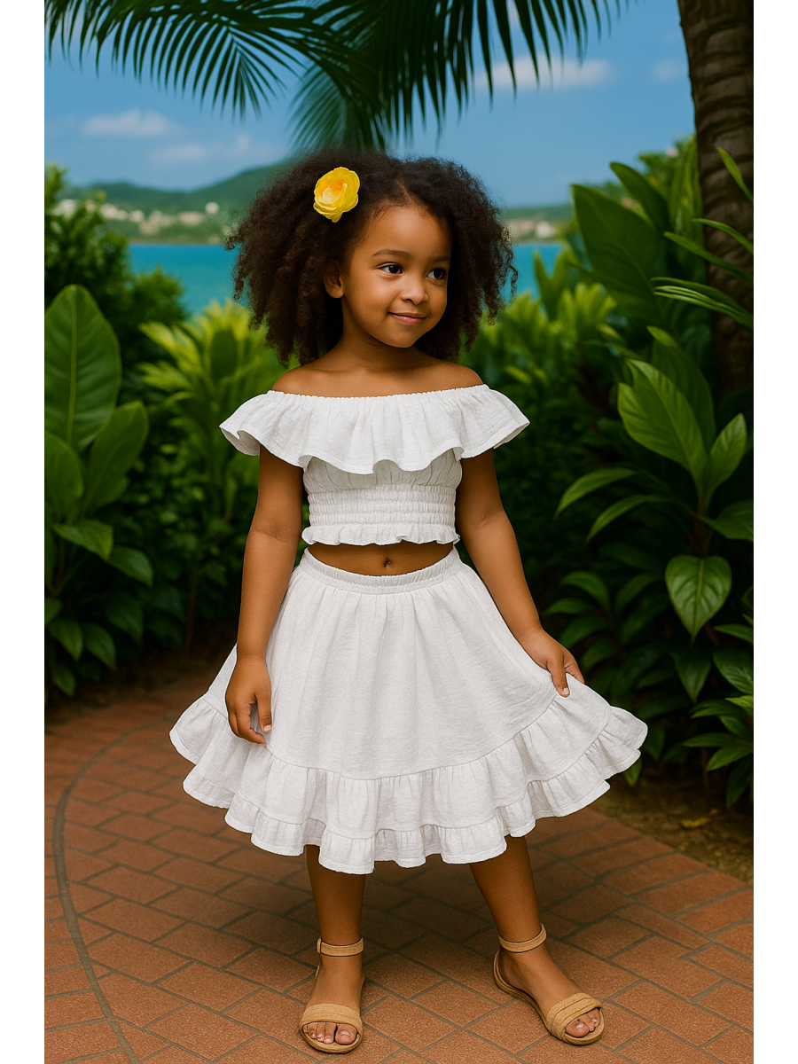 Ensemble tout en coton blanc avec son jolie volant au niveau du col..