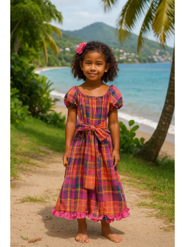 Rien n'est plus parfait que de posséder une magnifique tenue créole qui ne vous apportera que de la joie et la confiance. Dody vous présente la robe Jade de la collection pour filles qui est juste ce qu'il vous faut pour attirer l'attention avec son style chic antillais. Jade vous offre un mix idéal entre élégance et confort