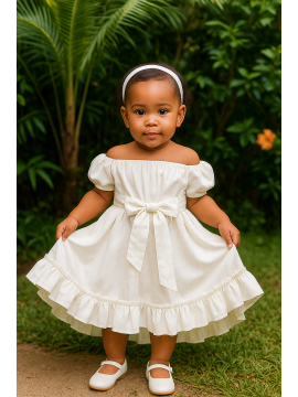 Vous cherchez une tenue unique convenable à votre petite pour ce moment spécial de cérémonie de baptême ? Voilà donc la robe Zéphire de la collection Dody ! Réalisée en coton d'une blancheur rayonnante, cette robe est longue, joliment évasée, col à volant en bateau avec le détail délicatement original des fronces.