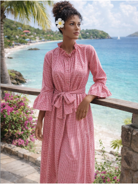Voilà une adorable robe créole facile et pratique qui permet de se vêtir à l’antillais tout en offrant confort et allure féminine. Robe longue et ample, col en bateau.