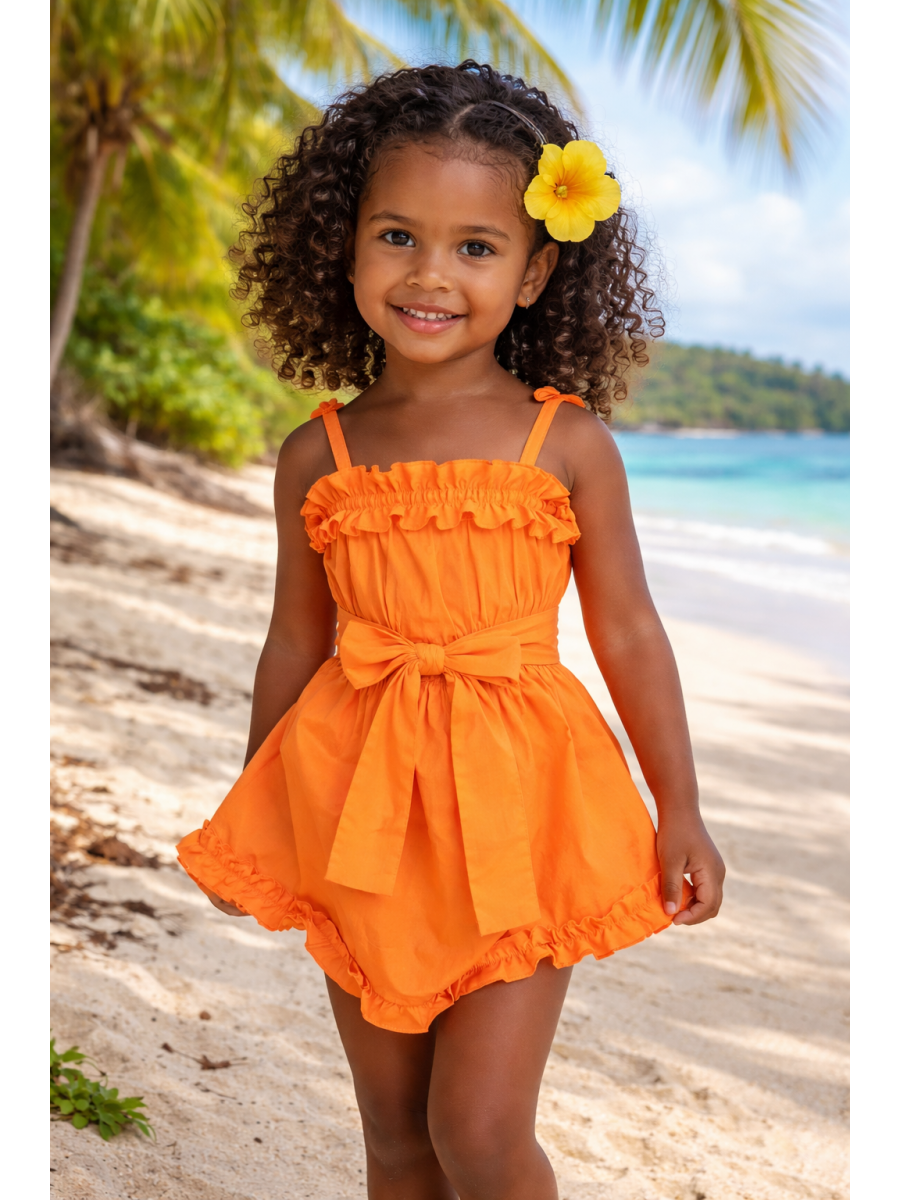 Sublime robe Orange tout en coton, légère et facile a porter, avec ses deux poches peut être utilisé aussi pour le carnaval pour la tenue parfaite de la marchande a accessoirisé avec la collection DODY ! Vendu sans le tablier