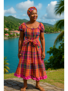 Rien n'est plus parfait que de posséder une magnifique tenue créole qui ne vous apportera que de la joie et la confiance. Dody vous présente la robe Jade de la collection pour femmes qui est juste ce qu'il vous faut pour attirer l'attention avec son style chic antillais. Jade vous offre un mix idéal entre élégance et confort. La robe fluide vient marquer votre figure féminine.
